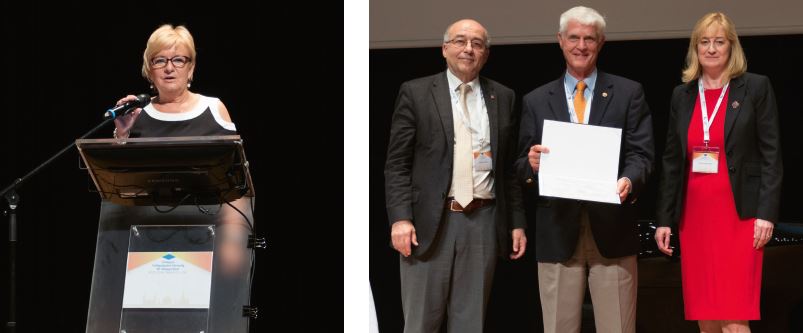 Dr. Sárosi Veronika, a szervezőbizottság elnöke, majd dr. Kovács Gábor elnöki köszöntőjét követően bemutatásra kerültek a Társaság új tiszteletbeli tagjai. Paul A. Bunn jr. dr. köszöntését Bogos Krisztina dr., Khoór András dr. laudációját Ostoros Gyula dr. tartotta. Ezt követően kerültek átadásra a Társaság díjai: a Korányi Frigyes-emlékérem, a Böszörményi Miklós-díj és a Kováts Ferenc-emlékérem.